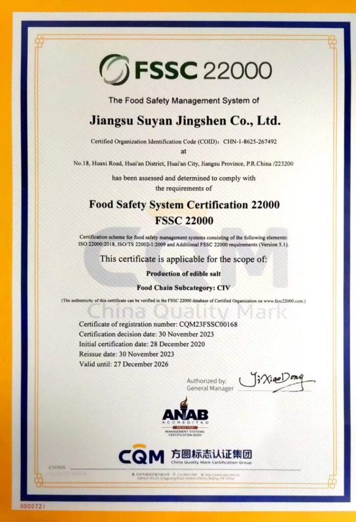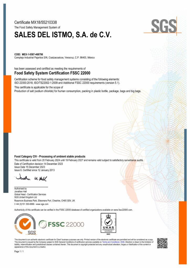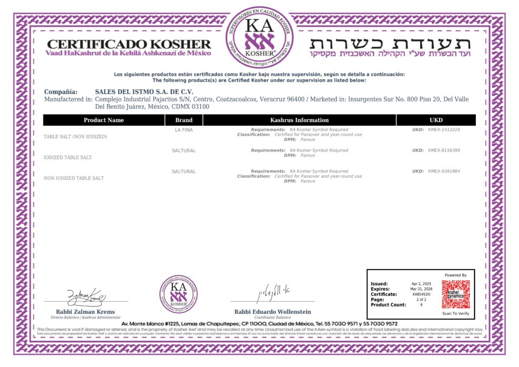 Certificado bajo ISO 9001:2015, FSSC 22000 y Kosher, asegura un suministro confiable con estándares globales de excelencia.